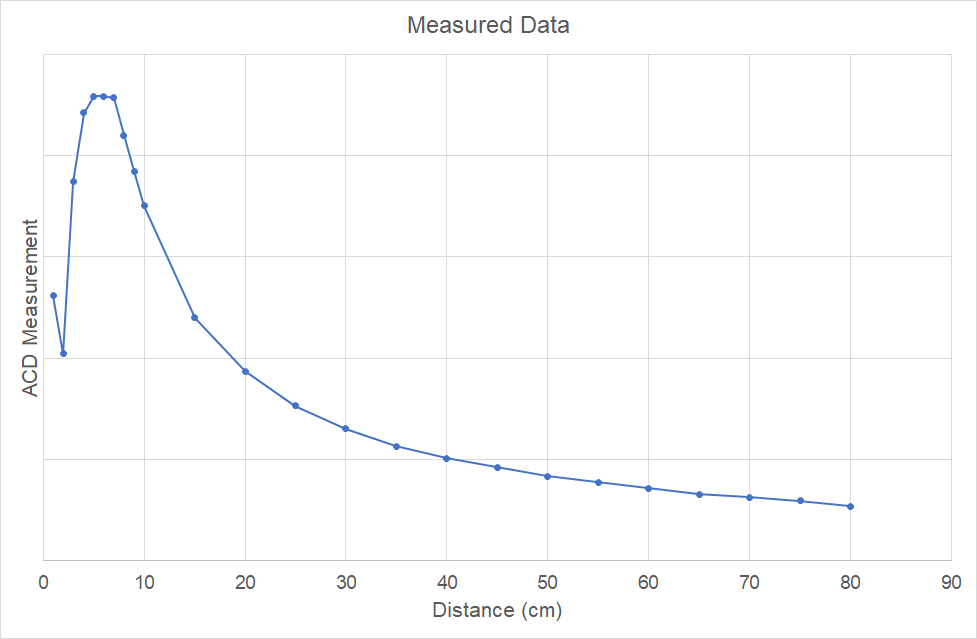 You should plot your results in a computer package, such as Excel or MATLAB, with the x-axis as the distance measured, and the y-axis as the ADC measurement value, as illustrated in